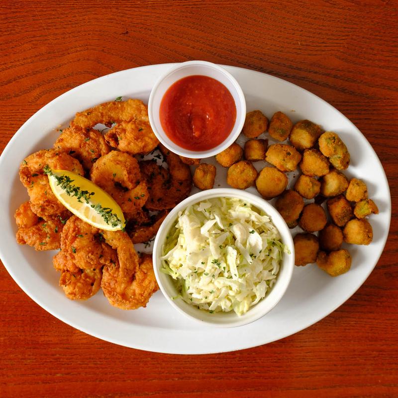 10 Fresh coastal shrimp blackened, grilled, or fried served with your choice of cocktail or tartar sauce and two famous sides.
