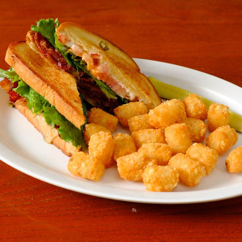 Thick-cut apple smoked bacon topped with melted pepper jack, ripe tomato, mayo, and lettuce and served on Texas toast.